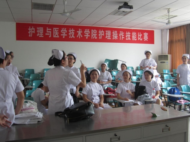 为了纪念2016年“5.12”国际护士节,全面培养护医学生创新能力。2016年4月21日护理与医学技术学院护理操作技能竞赛如期举行,出席本次比赛的有护理系主任邓荆云,副主任宋建华以及2013级本科班,2014级高护亚心班的参赛同学们。