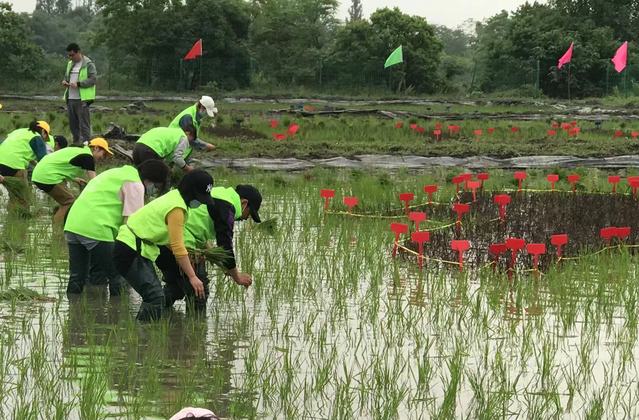 在稻田中,大家按照设计好的图纸用竹签和红线做好标记,并根据标记分组进行种植,从空中俯瞰,40亩稻田仿佛巨型画板选种、育苗、园林设计都是生命科学学院学生学习的专业知识,多年来生命科学学院一直利用专业优势服务社会,助力新农村建设。这次和蔡甸区政府及街道党工委、办事处联合举办的庆祝建党百年,七彩水稻插秧活动,就是实实在在地把党史学习教育放到田间地头,让学习接地气,让师生们脚下有泥土,心中有真情,既为乡村振兴贡献江大智慧、江大方案,又把专业实践和思政教育相结合,让大学生们深入生活,更加坚定理想信念,更好地服务社会。生命科学学院党委书记肖静说。