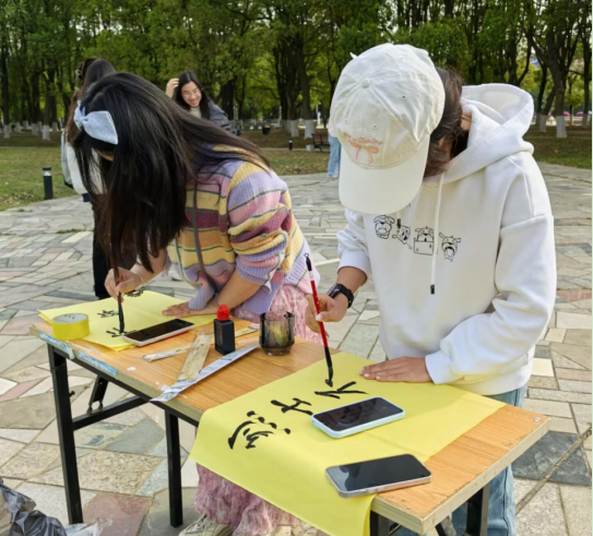 活动现场开展了“清明祭英魂,哀思寄云天”便签寄语及翰墨传承活动。同学们在便签上书写对革命先烈的崇敬和对亲人的思念,并将便签贴在展板上,化哀思为力量。书法体验区,同学们挥毫泼墨,感受传统文化魅力,种下文化自信的种子。