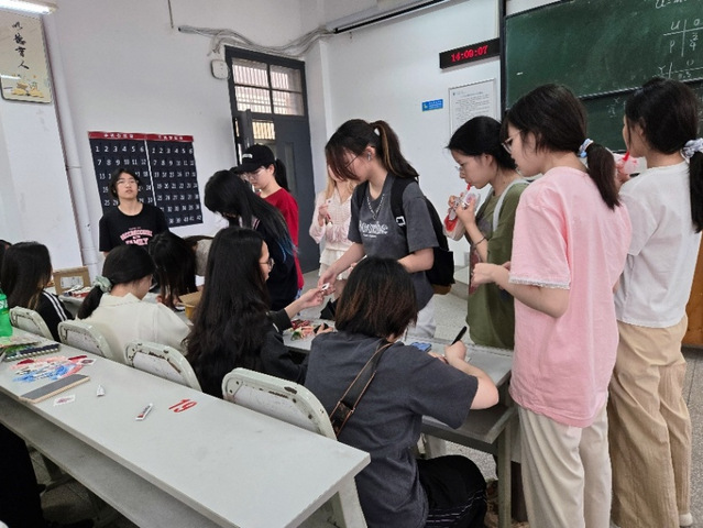 活动伊始,主持人追溯着干花工艺的文明密码:从《楚辞》中纫秋兰以为佩的香草情结,到唐宋女子以干花制作香囊寄情的风雅;从明代《长物志》记载的干花保存技法,到如今非遗传承中的创新演绎。同学们在流苏轻摆间触摸着传统文化的温度,更在书签方寸间开辟出连接古今的情感通道。