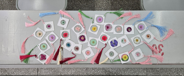 每位参与的同学都得到两份素白书签的特殊设定,让这场手工活动升华为双向的情感联结。留在身边的书签夹着四月的樱花,背面记录着制作时的天气与心情;而另一份书签,则满载同学们的爱心与祝福,统一置于回收区,而这些汇聚一处的书签,即将踏上一段意义非凡的温暖旅程。