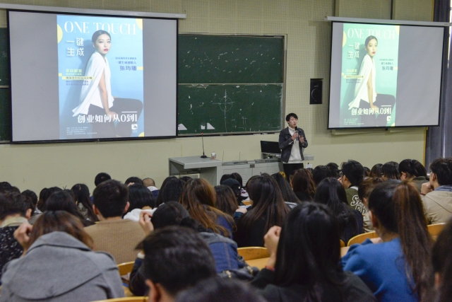 张玙璠首先讲述了自己在新加坡和国内的创业历程,分享了自己的创业心得体会。接着针对“如何寻找创新方向”、“如何写商业计划书”、“如何做好产品推广”等问题,进行了详细的讲解,重点向大家传授了在互联网创业方面的经验和注意事项。最后,张玙璠向大家介绍了自己公司签约校园设计师的活动。