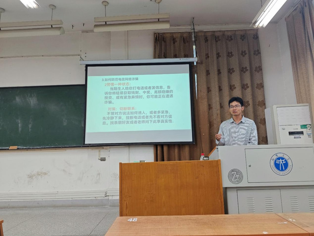 培训会上,蔡亮老师从消防安全、政治安全、交通安全、反电诈四个关键方面,为同学们带来了一场生动且极具教育意义的讲座。