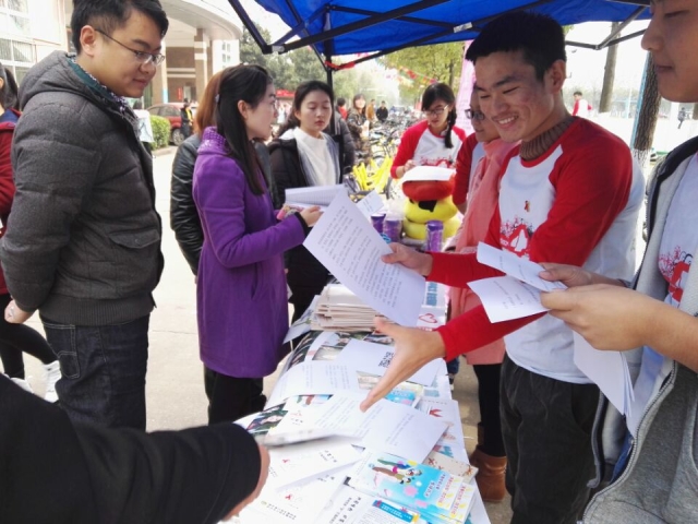 为让大学生在认识艾滋学会自护的同时减少有色眼光看待艾滋病患者的现象,武汉计划生育协会联合江汉大学青春健康同伴社于12月1日在我校诗香食堂前举办了“携手抗艾重在预防”主题宣传活动。
