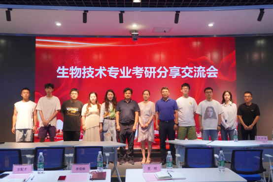 2025年6月16下午,由生命科学学院生物技术专业“研途筑梦 携手护航”考研分享交流会在J12A109教室举行。学院副院长李佳楠、党委副书记王配才,生物技术系主任潘磊,副主任夏明、杨婷,系党支部书记、221班主任王莹,青年教师代表石胜超以及生物技术系22级全体学生等出席本次交流会。
