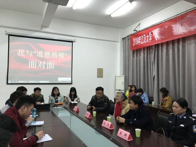 为传递奉献友爱精神,加强大学生的思想道德修养,商学院于2016年12月28日下午,在师生活动中心207会议室举办了"我与道德楷模面对面"的座谈会。参与本次会议的有全国道德模范王群老师、王争艳老师、刘洋老师,商学院党委副书记陈军、团委魏君老师以及商学院的学生干部。