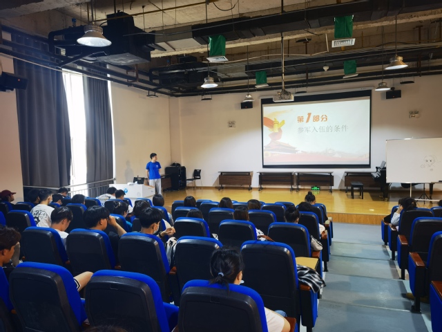 为了弘扬爱国主义精神,普及国防教育,使广大学生增强国防观念,也为鼓励音乐学院学生积极参与应征入伍,提高兵员征集质量,推进国防和军队现代化建设,音乐学院开展大学生入伍主题教育活动。2022 年5月17日中午,在音乐学院B106教室召开了“征兵入伍宣传”主题教育活动。