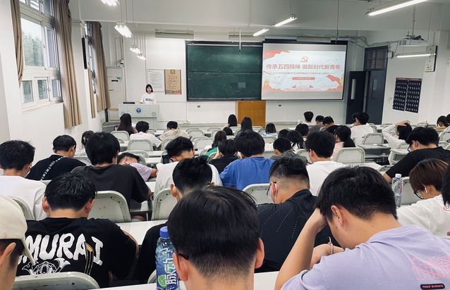 而后,学生党员夏丹丹同学紧扣“五四精神历久弥新,爱国主义代代传承”这一主题,带领同学们深入学习习近平总书记《在庆祝中国共产主义青年团成立100周年大会上的讲话》精神。这是一篇对青年满怀深情与期待的讲话,更是一篇对青春充满赞歌的发声。我们一起从五千年文明的源远流长中探索青春的朝气蓬勃,一起从百年的峥嵘岁月中感受青年的自强不息。