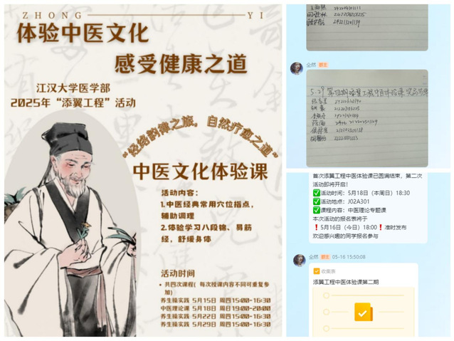 医学部相关负责人表示,本次活动严格依照“添翼工程”策划框架,不仅为经济困难学生提供免费中医体验,更通过“养生操实操+理论知识”的模式,让传统医学智慧融入日常生活。未来,医学部将延续“进阶班”规划,拓展“中医文化进校园”系列活动,打造“理论—实践—志愿服务”育人闭环。