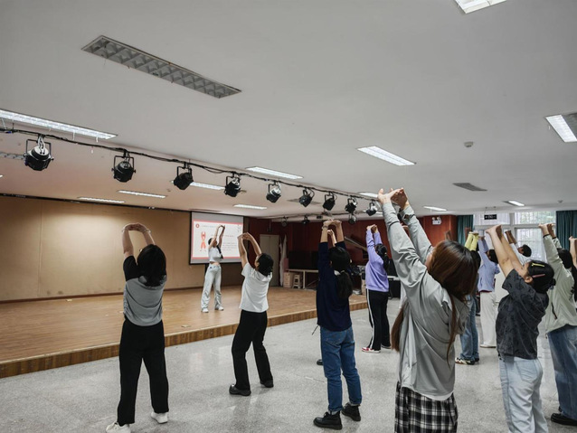本次培训采用递进式课程安排:5月15日至5月29日期间,从八段锦实操到中医理论筑基、易筋经体验及饮食保健教学,逐步引导学生深入体验。5月22日第三期课堂上,蔡柱兰老师在师活101带领学生学习易筋经核心招式,结合“筋膜理论”讲解拉伸训练对颈肩劳损的改善作用;5月29日第四期课堂上,魏欣老师开展“饮食保健和六字诀功法教学”,讲解食疗原则与呼吸吐纳养生法,帮助学生掌握日常健康管理技能。