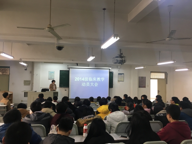 为促进医学院大三学子们快速适应临床实践教学新阶段, 12月15日上午,医学院在J12B107开展了2014级临床教学动员大会,与会人员有教办主任付艾妮老师、学办主任车超老师、各年级辅导员,以及14级临床医学专业全体学生。