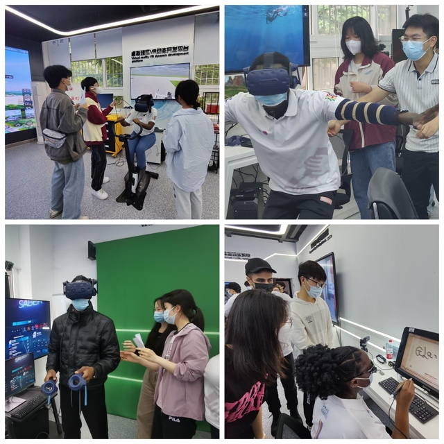 chengjingh接着,主讲人邓亚茹带领国际教育学院师生“云参观”了校园全景,俯瞰视角下的江大美不胜收,引来留学生阵阵赞叹。参访过程中,人工智能学院学子与留学生们积极互动,现场气氛轻松而欢快。随后,在场师生分别体验了VR校园全景骑行、模拟潜水和乘坐过山车、手势“切方块”游戏和增强现实场景,参观了AI实验室。