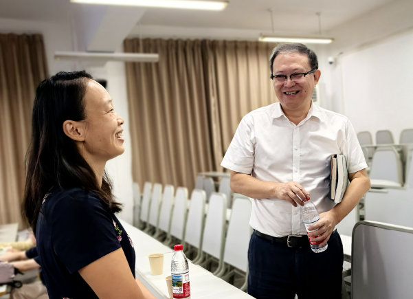 课后,覃道明书记与周静老师亲切交流,充分肯定其备课充分、思路清晰、语言平实生动、案例教学互动充分,鼓励她进一步强化价值引领、增强课程实践导向。在与学院相关负责人交流时,覃道明书记强调,课堂教学是人才培养的主阵地,学院要始终把提高教学质量作为核心任务,进一步深化课程思政建设,强化实践教学创新。