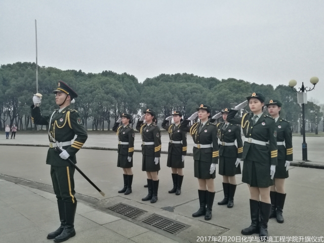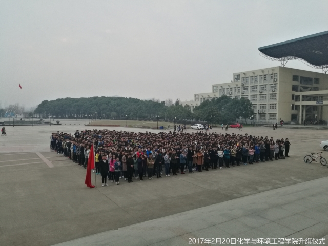 2017年2月20日早上七点整,化学与环境工程学院在英才广场举行了本学期第一次升旗仪式,出席此次升旗仪式的有院长刘继延,党委副书记沈博,学办主任卢春分,周瑶,褚妙博,王凡,欧阳思萌以及学院全体学生。