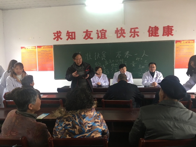 3月18日上午,江汉大学医学院的“新青年下乡”爱心服务小分队在医学院党委副书记陈劲松、校医院李茜院长、校团委副书记吴云龙的带领下,到蔡家榨街凤凰寨村为村里60岁以上的留守老人进行医疗健康服务。
