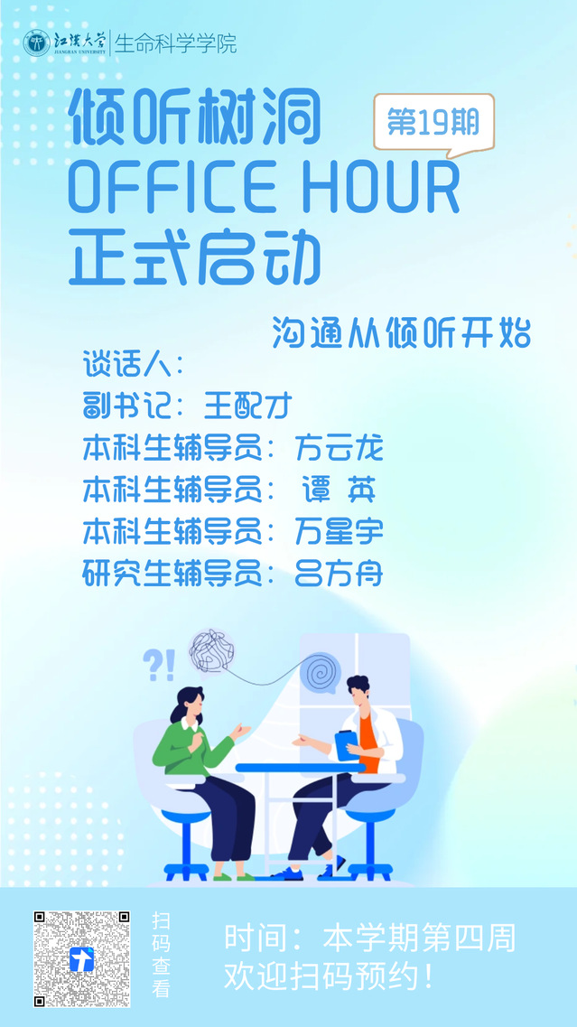 未来,江汉大学生命科学学院将继续深化“倾听树洞OFFICE HOUR”活动,完善家校协同机制,以更系统、更温暖的举措,护航每一位学子的成长之路,让心理健康意识深植校园,让育人初心在实践中绽放光芒。