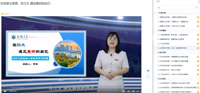 为让新生提前打破对大学的陌生感,江汉大学依托线上平台打造“前置化、全景式”入学课堂,学生处联合教务处、国际处及各学院辅导员等多方力量组建专项工作团队,围绕新生入学适应的核心需求,聚焦价值引领、生命健康、家校协同、成长发展、社会适应、创新教育六大板块,精心打磨19节系列微课,形成系统化线上引导内容。