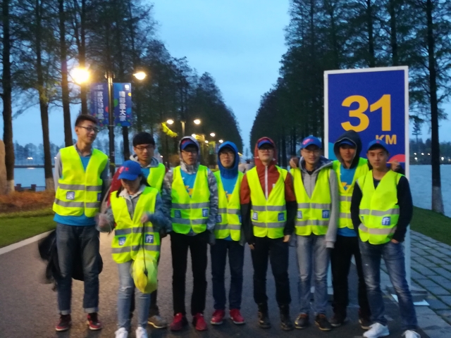 2017年4月9日,医学院100名同学参加了第二届武汉马拉松的医疗志愿服务活动。他们被分为十个小组,在28KM到32KM处为汉马运动员们提供医疗服务。