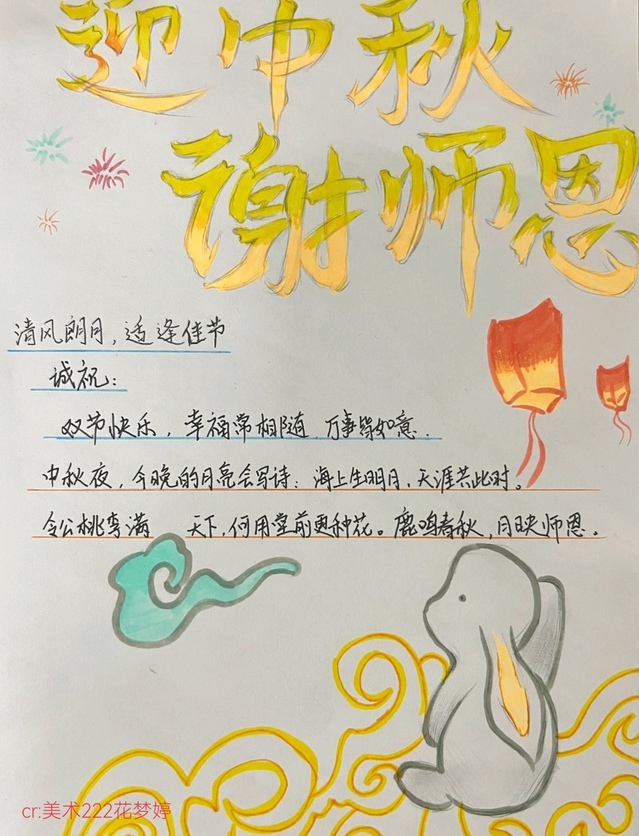 农历八月十五是中国传统节日——中秋节。而今年的中秋节与教师节正好撞了个满怀。“黑发积霜织日月,粉笔无言写春秋”,在这个特殊的日子里,为了能够缓解学生的思乡之情,丰富学生的课余生活,增强师生之间的情谊,美术学院开展了“中秋节 忆师恩”主题书画活动。学生们用最熟悉的画笔,绘出心中的思念和话语。