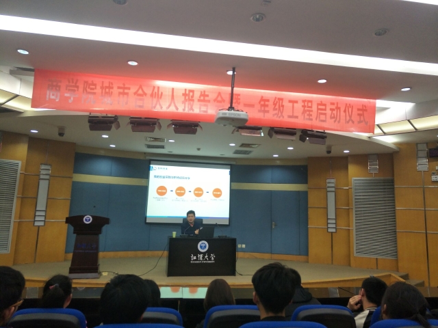 为响应“百万大学生留汉创业就业计划” ,4月11日晚,商学院城市合伙人报告会暨一年级工程启动仪式在图书馆报告厅举办。活动特别邀请武汉市城市合伙人、天使投资人、大学生创业导师朱自芳老师作为嘉宾,我院陈军副书记、一年级辅导员、2016级学生参加了此次活动。