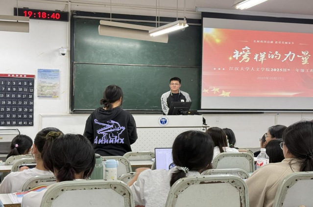 为深化“一年级工程”育人实效、激活校友资源育人价值,扎实推进学风建设,2025年10月15日,人文学院开展“学长归来”校友分享活动。活动由2025级本科生辅导员王梦莹主持,特邀2024届汉语言文学专业校友、第十五届“感动江大人物”伍鸿宇返校,为2025级新生带来成长规划与就业实践专题分享,将新生引导与校友榜样示范深度融合。