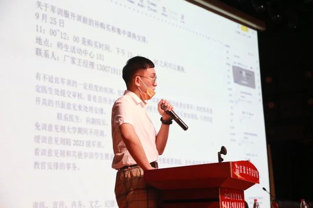 首先,周正儒老师就音乐学院2022级学生军事技能训练考核准则进行解说,其中,对军事技能训练评分指标、考核标准、请假制度、军训宣传分别作出了详细介绍,号召同学们提高认识、服从命令、听从指挥、刻苦训练,并积极配合学校做好疫情防控工作,以新时代青年人的气魄,高标准、高质量地完成好本次军训。
