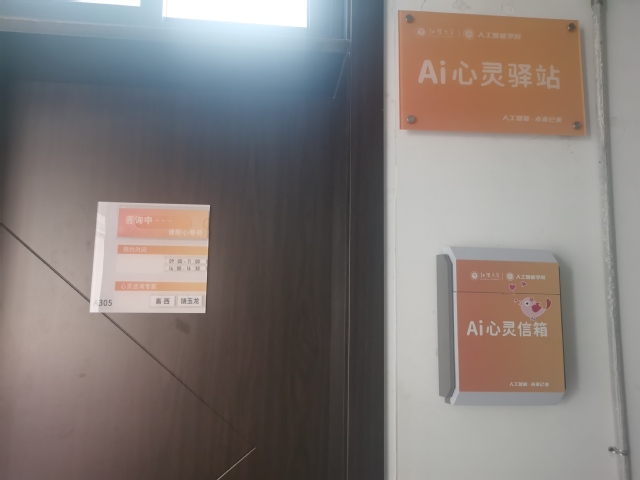 在校学生处、心理健康教育中心等多部门关怀指导下,人工智能学院高度重视、积极筹备,于2022年7月7日正式举行了院级心理健康工作站启动仪式,在原有的J05 A305心理咨询谈话室的基础上成立了“AI心灵驿站”。