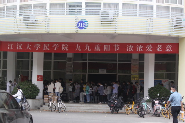 为弘扬尊老爱幼的中华传统美德,2022年10月4日中午12:00医学院杏林针推社,影像,知行礼仪协会,舒语,牙之韵社团特在重阳佳节到来之际举办此次宣传、义诊活动,为广大师生和校园里的叔叔阿姨们提供重阳节知识科普和义诊,普及健康知识,传播健康理念,养成健康身体。