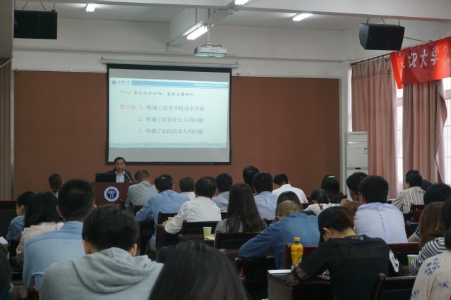 会上,学工部部长赵兴传达了湖北省教育厅举办的贯彻落实《普通高等学校学生管理规定》(以下简称《规定》)工作部署推进会、专题培训班的精神,详细讲解了《规定》修订的原因及过程、重要意义、主要内容以及高校应注意的问题。同时,结合我校的实际工作,对重要章节进行深入辅导,帮助全体学团人员进一步加深了对新《规定》的理解。