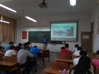 本次活动由生活委员邓贵平牵头,班委全力协调组织,5月5日正式开展。在开展活动之前,邓贵平认真搜集资料,多方征求意见,制作了一套精美的展示PPT。本次“美丽故乡——我的家”活动介绍的是邓贵平的家乡——广西桂林。