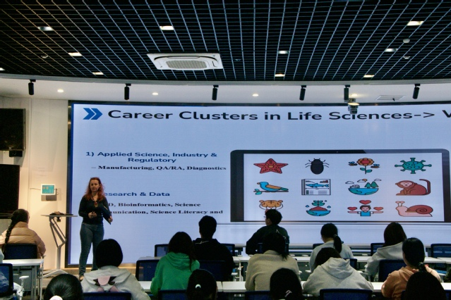讲座中,萨拉教授详细梳理了生命科学领域的八大职业集群,包括研发(R&D)、工业制造、质量保证与监管事务、实验室与诊断服务、环境生态服务、农业与植物生物技术、公共卫生与食品安全、科学传播与教育等。针对每个集群,她不仅介绍了核心工作内容,还明确了所需的技术技能与软技能,例如研发岗位需具备实验设计与问题解决能力,监管岗位则注重合规意识与文档处理能力。