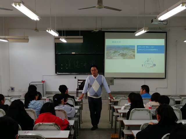 本次道德讲堂共由五部分内容组成:看一段短片、讲一个故事、唱一首歌、诵一段经典及送一份祝福。讲堂正式开始,主持人为大家播放了《第十届感动江大人物—“博士服务团”》的宣传视频,大家看到了优秀的江大博士们扎根基层,服务社会的身影,深受感动。紧接着,魏强博士以自身的故事为引,给同学们分享了自己求学的经历,讲述了自己是如何一步一步走上科研的道路以及学术上的巨大成就。同时,魏强博士着重分享了自己参加湖北省第四届博士服务团的经历,在湖北红安干部学院挂职期间,扎根基层,服务当地人民,不辞辛劳,将自己所学带到实践中来,解决了群众的难题,最终获得湖北省博士服务团“先进个人”。魏强教授发人深省的故事,赢得了阵阵掌声,同学们也深受启发。