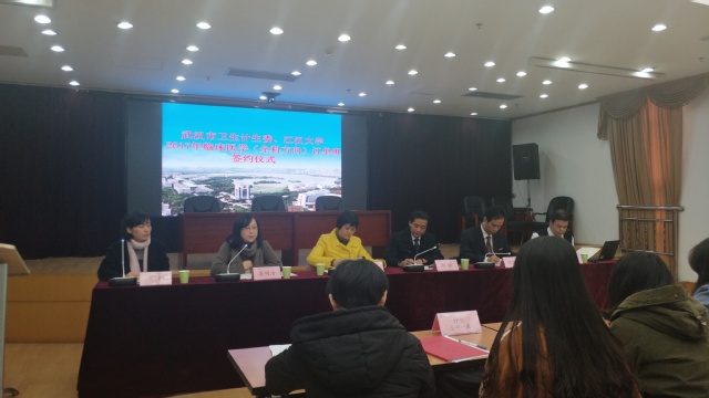 2017年12月14日,武汉市卫生计生委、江汉大学2017年临床医学(全科方向)订单班签约仪式在江汉大学行政楼219举行。武汉市卫生计生委、武汉市常春花园社区服务中心处相关负责人及工作人员,江汉大学教务处相关负责人、江汉大学医学院院长、党委副书记、学办主任、学生辅导员及医学院14级、17级全体临床医学(全科方向)订单培养生出席仪式现场。