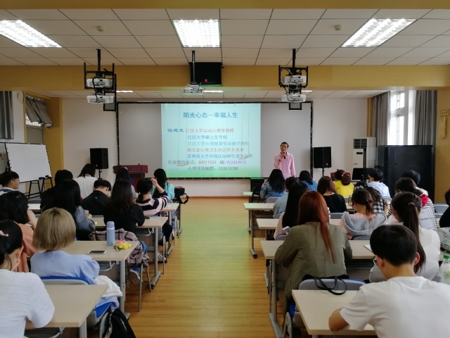 2018年4月12日下午,商学院联合校心理中心开展暖春季心理健康系列活动,特邀请运动心理学教授、资深心理辅导教师钱建龙来院作了题为“阳光心态 幸福人生”报告。本次活动在j01a501会议室开展,商学院各年级学生聆听了报告。