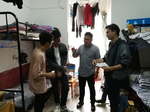 清明假期刚刚结束,在商学院领导的高度关注下,4月12日商学院党委副书记陈军带领学工老师及10名优秀学生党员进行查寝,主要是针对宿舍环境、学生作息、使用大功率电器和宿舍内务等情况进行检查。部分寝室存在问题,已责令整改,大部分寝室情况良好。各寝室均未发现重大问题。本次活动志在积极建设文明寝室,为一年级同学提供学生党员的精准帮扶。