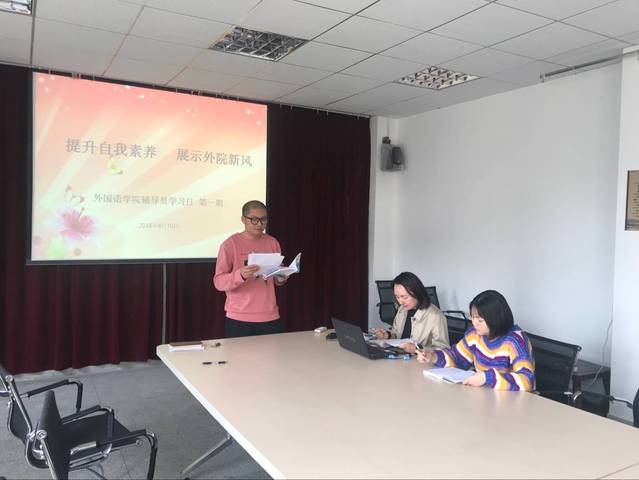为全面提升辅导员的职业技能和专业素养,进一步推动学院辅导员队伍专业化、职业化发展,促进辅导员间相互学习交流,4月10日,外国语学院举办了“提升自我素养,展示外院新风”为主题的系列辅导员学习交流活动。