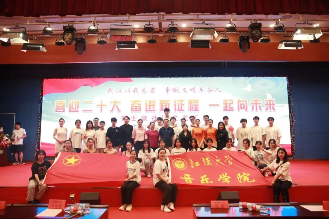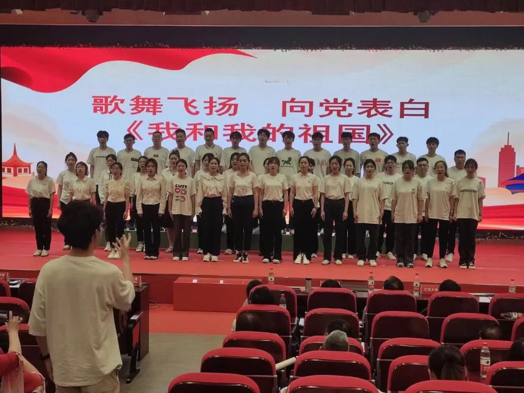 2023年5月,音乐学院党委和团委响应官士墩社区的邀请,组建了由江汉大学音乐学院党员和共青团员以及官士墩社区党员代表组成的合唱团,参与官士墩社区的“歌舞飞扬 向党表白”主题活动。我院30名师生代表与社区工作人员合唱《我和我的祖国》,以歌声表明初心,从音乐中回顾党史,感悟光荣革命传统、赓续红色血脉,向党表白,表达对祖国和党的深深热爱。