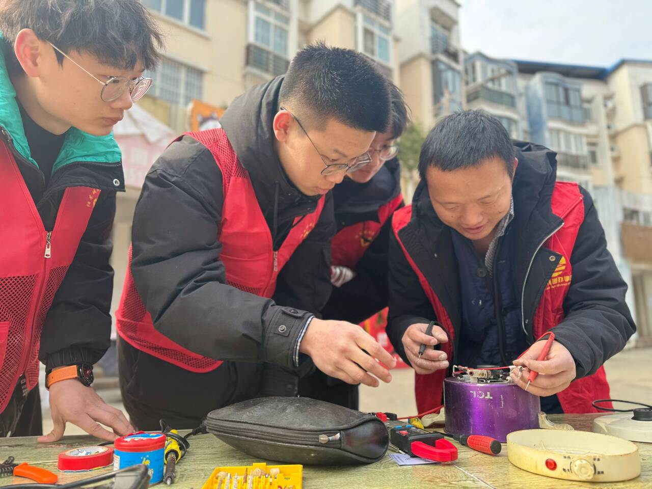 “让学雷锋在人民群众特别是青少年中蔚然成风,让学雷锋活动融入日常、化作经常,让雷锋精神在新时代绽放更加璀璨的光芒。”3月2日上午,来自江汉大学人工智能学院的“锋行者”——电子爱好者协会的师生们走进了武汉经开区东风阳光城社区开展了“学雷锋”义务维修小家电活动。他们将技术服务送到家门口,把“雷锋精神”传递到人民群众心坎上。