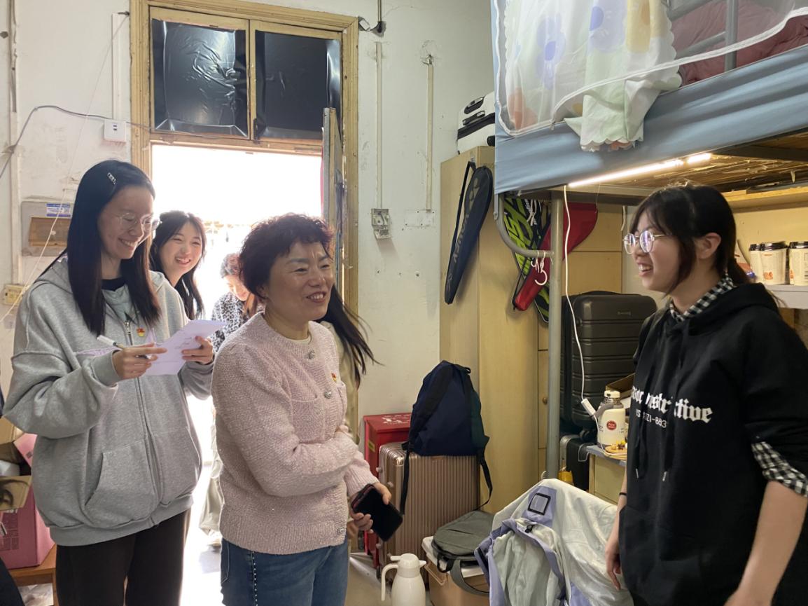 寝室走访不仅是对寝室安全生活的关心和关注,也是对学生自律和自我管理能力的督促和引导。3月13日,学院领导和全体辅导员老师一同走进北区学生寝室,进行全院覆盖式寝室走访活动,旨在加强学生寝室管理,营造良好的学习生活氛围,展现青春活力和文明风采。在这次寝室走访活动中,学校相关领导和辅导员们用一盆盆鲜活可爱的多肉绿植,拉进师生距离,打破沉闷和拘谨,与同学们亲切交流,了解他们的生活情况和学习状态。