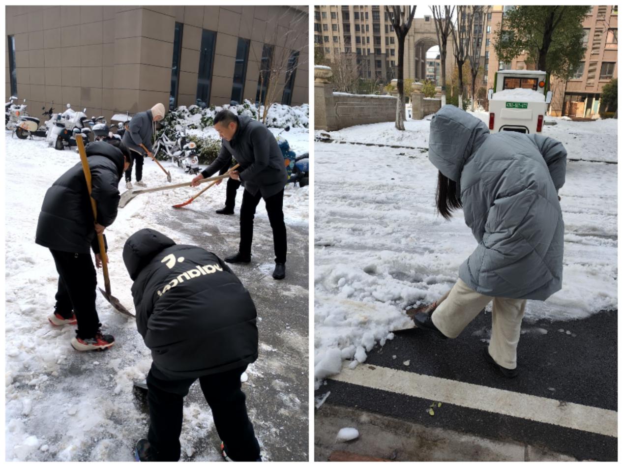 2024年春节前夕,武汉市出现低温雨雪冰冻灾害,受天气影响,武汉大部分路面积雪结冰严重,对群众安全出行带来了诸多不便。英语232 班陈诗语同学积极响应黄陂区板桥逸景社区的号召,报名参加除雪工作。除雪现场,在社区的指挥下,所有志愿者分成了几个小组,分别负责不同区域的扫雪工作。协同配合,不畏严寒,齐心协力,按照“先通后畅”的原则清扫主干道积雪,同时清理路边断裂树枝,全力消除安全隐患,为群众开辟出一条条“安全便民通道”。