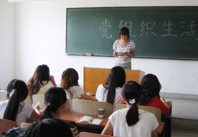 9月23日下午3点40,数计学院学生党员林彬在J04B105主持开展了07、08、09级学生党员组织生活,学办主任兼学生党支部书记陈谷老师与会指导。 首先07网络班李丹、钱英杰两名学生党员分三个版块给大家做“科学发展观之全面协调可持续发展”的报告:第一、坚持全面协调可持续是我国经济社会发展的必然要求;第二、按照中国特色社会主义事业总体布局全面推进各项建设;第三、坚持生产发展、生活富裕、生态良好的文明道路。他们呼吁大家为创建资源节约型和环境友好型社会努力奋斗。 然后林彬布置了下两次组织生活的主要议题,下次由07软件班进行“深入学习科学发展观”最后一讲,再下次由计科班同学带领大家学习17届四中全会的主导思想。 接着学生党员钱英杰宣读了学生党员自身测评表以及评分细则,测评表主要设置了四个版块:①理论学习 ②工作部分 ③学习部分 ④生活部分。要求学生党员出席任何大型活动必须佩戴党员徽章,党性修养方面以闭卷考试的形式考核等。 第四项,林彬再次强调了“三个一”活动的要求,“树立一面旗帜,联系一名同学,负责一片责任区”。这学期我院开展“三个一”活动有点小的变动,将以前“联系一名后进同学”改为“联系一名入党积极分子”,“联系两个寝室作为责任区”改为“联系一个寝室作为责任区”。然后学生党员尹雪、张威分别对上学期“三个一”的开展情况作了总结,他们提出了许多有效的方法,剖析了一些不好的现象和问题,也谈到了一部分同学的变化和进步。  (图为尹雪做“三个一”总结) 最后,全体学生党员就10月12日我院升旗仪式的议程计划做了讨论,初步决定以“表彰学风建设积极分子和先进团队”为主题。 会议的尾声,陈老师做了总结,首先他要求学生党员要时刻关注时事了解国情,达到一个学生党员起码的思想层面。在学生党建工作中,他特别提出坚决杜绝学生党员停滞不前的现象,任何时候学生党员都要以一名党员的标准严格要求自己。对于“三个一”的开展,他希望继上学期好的开始,接下来的工作能有更大的突破。最后,他强调了十一国庆期间的安全和稳定,希望学生党员能关心身边同学,协助老师搞好安全稳定工作。