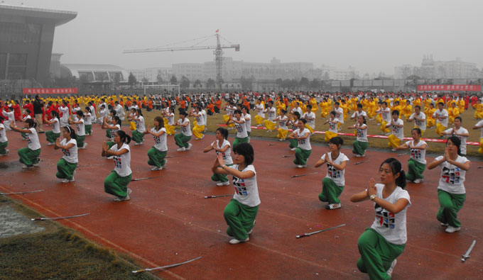 | | | 弘扬中华传统文化,展示中华武术风采,健中华之体魄,扬少年之威武,促校风之建设。踏着秋天的气息,江汉大学首届武术操比赛的决赛于10月29日在田径场如期举行。校长杨卫东同志等校领导作为评委出席了此次比赛。