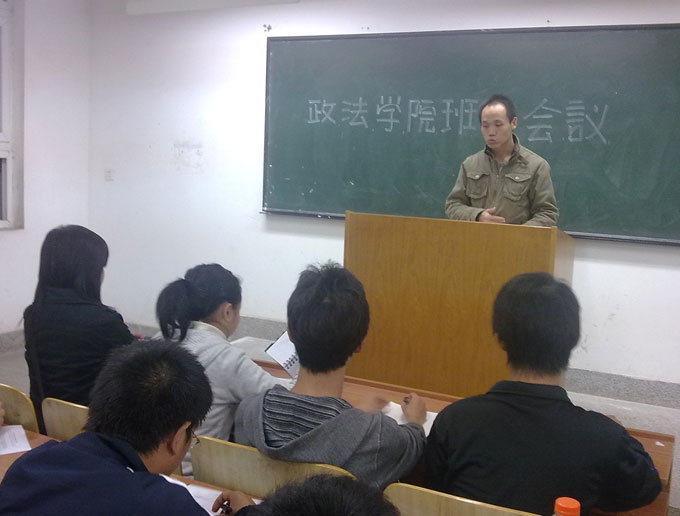 为进一步规范管理,加强政法学院学风建设。11月4日晚上8点,政法学院全体班长齐聚J02B207教室,召开班长大会,共同学习学校关于校风校纪相关要求。政法学院学生工作办公室主任张亮月老师,09级辅导员李莎老师出席会议,会议由张亮月老师主持。 张老师首先向各班班长传达了近期学校的各项工作精神,并就具体的各项事务性工作进行了指导。其次,张老师对于 近期学院的学风进行了肯定,认为学院本学期前期工作取得了一定的成效,但努力的空间仍然很大。对于早晚自习的要求进行了进一步的落实,并风趣地提出了“六六六进制”的学风规范机制。班长们普遍对于新的措施很是受用,认为会对他们工作的展开起到实质性的促进作用。再次,张老师再次强调防治流感工作的重要性,并具体讲解班委作为班集体的负责人在发生具体流感事件时的处理程序,让班长们心中有数。深刻领会到张老师反复提到的建设和谐政法的精神实质。 最后,张老师明确了班长职责应该有五点。第一,服务所有同学。第二,协调班集体的人际关系。第三,管理班集体运作。第四,信息收集工作。第五,进行一般的事务性登记等工作。这五点对于09级的班长们来说十分重要,让大家获益匪浅。