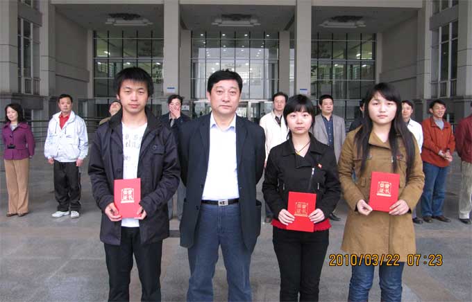 2010年3月22日早上7:20,江汉大学数计学院全体成员在英才广场举行了庄严的升旗仪式。党委副书记周汉平老师主持了仪式,数计学院全体领导老师、班主任代表和所有辅导员出席了此次仪式。 仪式过后,由汤唯院长宣读09年国家奖学金、校长奖学金、优秀学生标兵和校十佳青年的获奖名单,并为获奖学生颁奖。颁奖完毕,由党委书记王小净发表讲话。王书记给大家传达了两会的精神和内容,并激励同学们要好好学习,成为祖国的栋梁。讲毕,主持人宣布升旗仪式圆满结束。