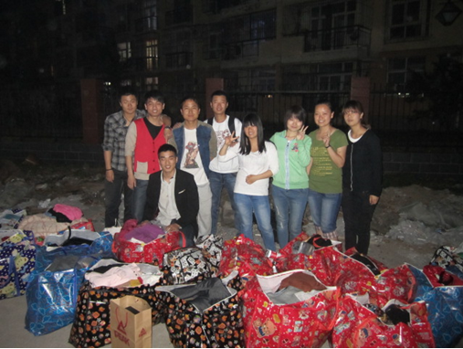 自四川雅安发生地震以来,各界人士踊跃奉献爱心,为灾区重建出财出力。我院团委倡议为灾区群众捐献衣物、棉被等物资,倡议一提出就得到了全院师生的积极响应。同学、老师们纷纷回家整理衣物,第二天,学院团委、学生会、青年志愿者协会的干部们到学生宿舍上门收集同学们捐献的衣物,直到晚上9点,共收集爱心衣物满满20大包。