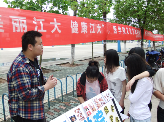 五月,百花争艳,才情尽展。9日,医学院“美丽江大 健康江大”文化节的首推活动――饮食文化节热烈开始啦!下午一点半在诗香苑门前,医学院团委学生会的同学挂好横幅,摆好展板,整齐桌子,等待同学前来参加。