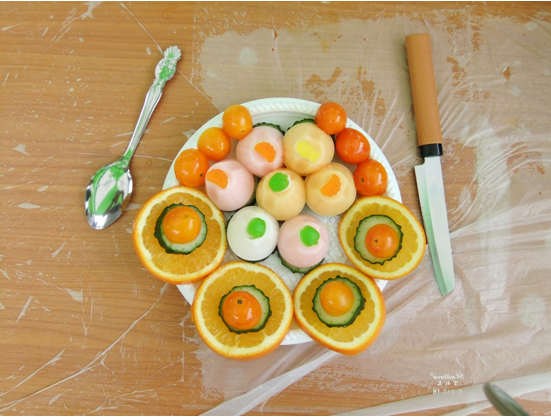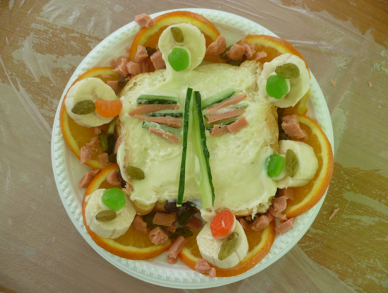 本次饮食文化节共分为三个环节,果蔬随心搭,专业点评以及健康饮食小常识。主持人在介绍活动内容和评分原则后,参赛选手就摩拳擦掌跃跃欲试了。活动每场分为四个组,每组在规定时间内要获取需要的食材,并将食材按照一定的想法调味、摆放设计,然后每组派出代表介绍自己的作品,主持人从健康的角度对作品的营养做出点评,各小组之间投票及观众综合投票决定出冠军。活动井然有序,气氛热烈,个性作品层出不穷。有的将食材摆放成海绵宝宝,有的把番茄弄出兔子的形状,有的则弄成森林,有的是吐泡泡的三文鱼,更有甚者摆放出我校校徽……各种风格,让人眼花缭乱,食欲大增。