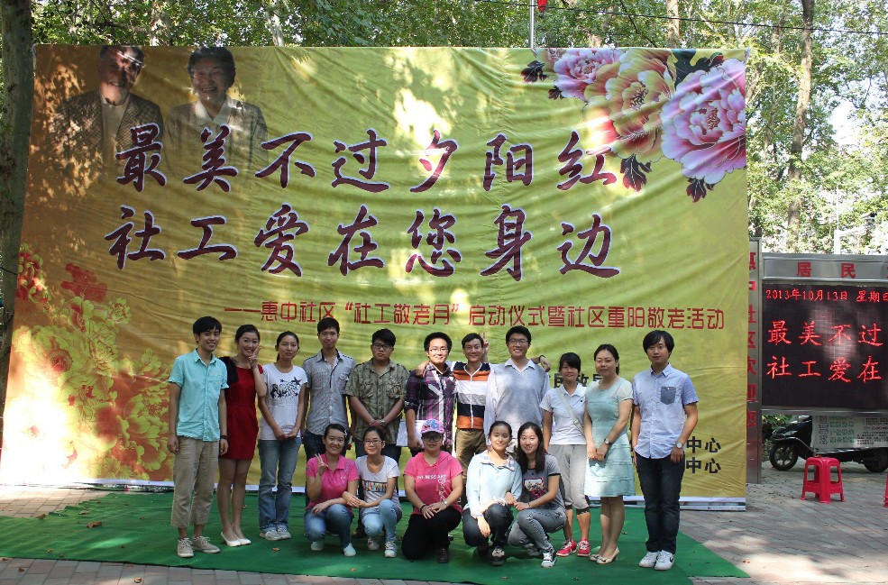 “最美不过夕阳红,社工爱在您身边”,昨天时值重阳佳节,市民政局首次“社工敬老月”系列服务活动在江岸区劳动街惠中社区拉开帷幕,我校社工协会应邀参加启动仪式。