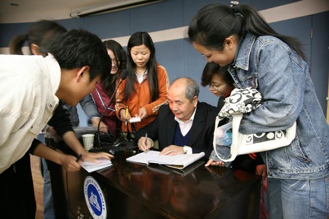 报告结束后,同学们与专家近距离进行了交流互动,提出了关于航天方面的许多问题,吴老为大家耐心解答,并为同学们签名留念,勉励大家勤奋学习,将来致力于我国的航天事业。