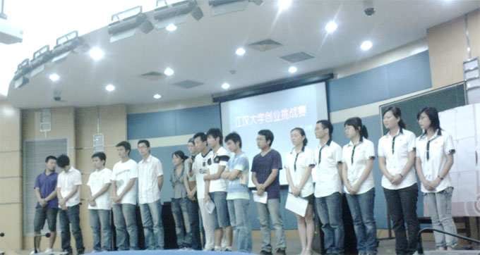 2009年6月11日星期四下午江汉大学首届“江汉大学创业挑战赛”在图书馆负一楼报告厅成功举行。商学院、物理与信息工程学院、艺术学院等六支团队参加最后的决赛。到场的评委老师有商学院的四位老师及校团委副书记詹志明老师等。